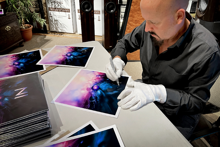 David arrives in Portland Oregon as the Double LPs and fine art prints arrive for the big signing. This wide-image gatefold is breath taking, but the deep violet discs themselves are something to behold. The fine art prints are incredibly detailed . . . revealing details unseen on the online images of the cover art. You can watch the signing at the link below.